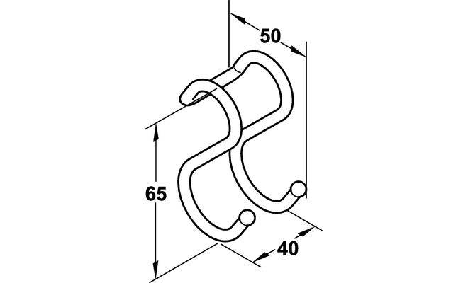 Двойной навесной крючок, изготовленный из хромированной стали с полированной поверхностью. Глубина крючка 50 мм, высота 65 мм, ширина 40 мм.