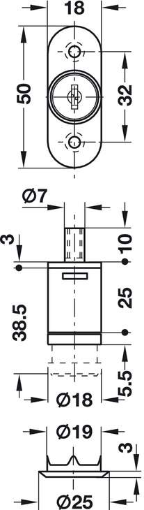 Описание Нажимной цилиндр для раздвижных дверей 18 мм с одинаковыми комбинациями закрывания