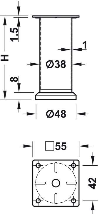 Технические характеристики Ножка мебельная хромированная 200 мм