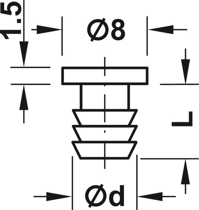 Отбойник мебельный черный пластик для запресовки в отверсие 6 мм (упаковка 500 шт) 35620431