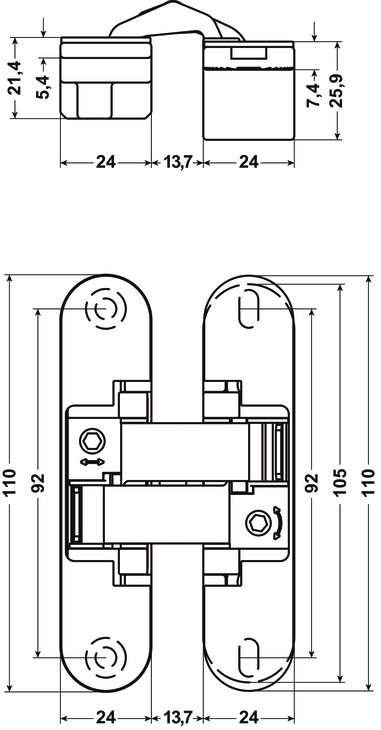Технические характеристики Петля скрытая Anselmi AN 150 3D хромированная матовая 180 ° вес двери 40 кг