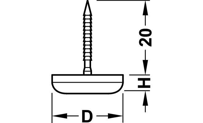 Технические характеристики Подпятник мебельный круглый для вбивания серый d 20 мм h 45 мм (упаковка 100 шт) 65013501