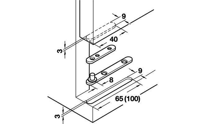 Технические характеристики Подпятниковая петля с короткой половиной петли сталь желт. хром угол 180° 40x65 мм