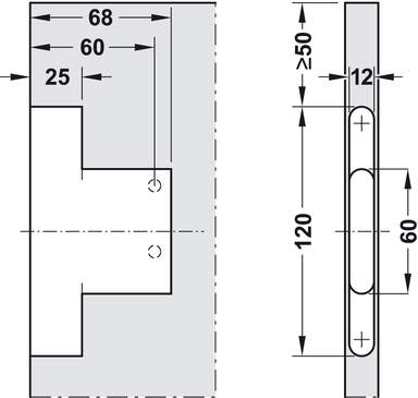 Технические характеристики Подвес врезной левый 12 мм сталь оцинкованная нагрузка 120 кг на пару