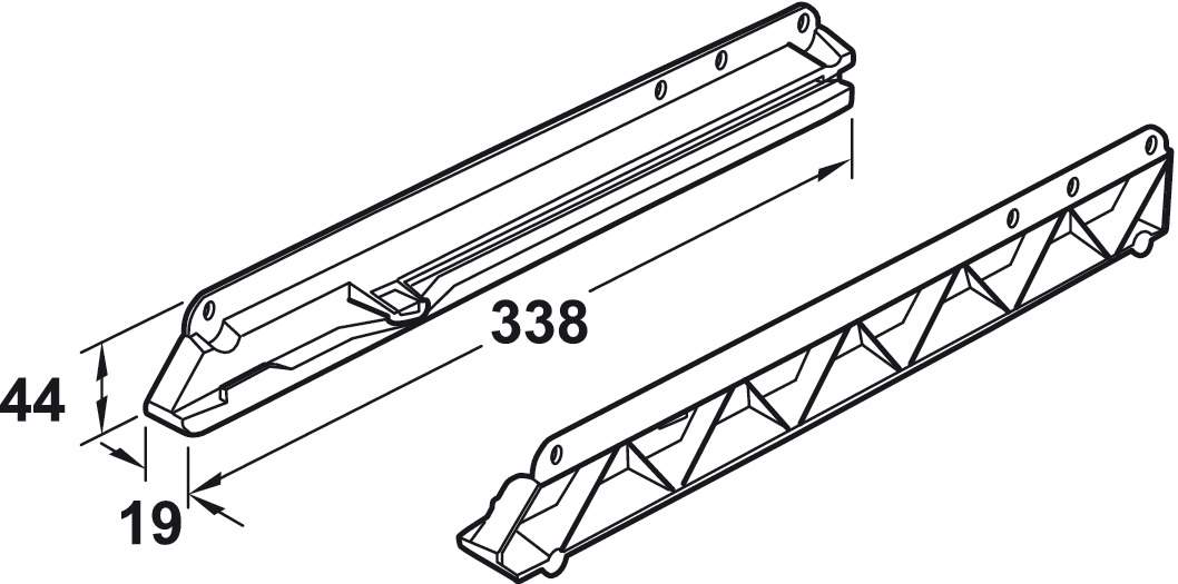 Версия Extension stop предотвращает непреднамеренное полное расширение корзины ограничитель глубины останавливает корзину на конце рельса при нажатии на легкое удаление, поднимая корзину вверх.