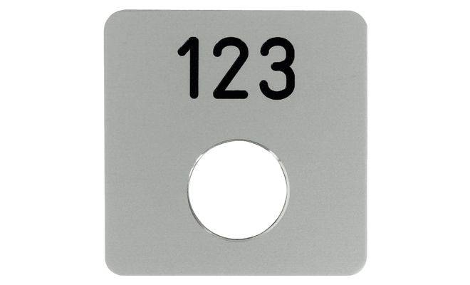 Технические характеристики Пластина номерная с отверстием,50 х 50 мм самоклеющаяся, алюминий цвет серебристый (нумерация под заказ)