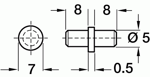 Полкодержатель для деревянных полок, с воротником, материал: сталь, вороненая, для вставления в отверстие диаметром 5 мм, несущая способность 80 кг.