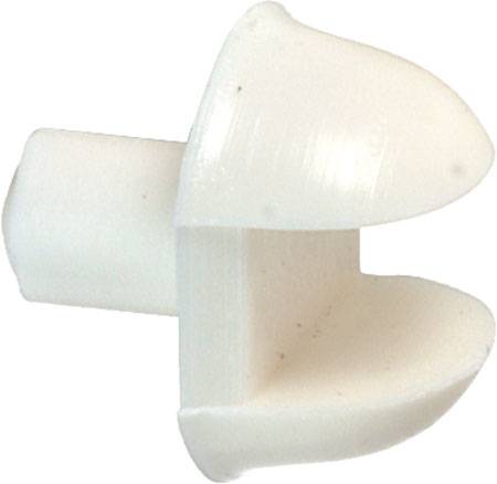 Полкодержатель для стекла, с подъемно-зажимным фиксатором, материал: пластмасса, цвет: белый, для стекла толщиной 5 мм, для вставляния в отверстие диаметром 5 мм.