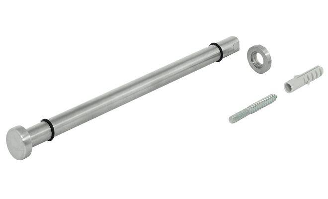 Полкодержатель для стеклянных полок, для настенного монтажа, видимый, диаметр 12 мм, длина 214 мм, материал: нержавеющая сталь матовая, квацованная, несущая способность: макс. 80 кг/м кв., для монтажа путем привинчивания.
