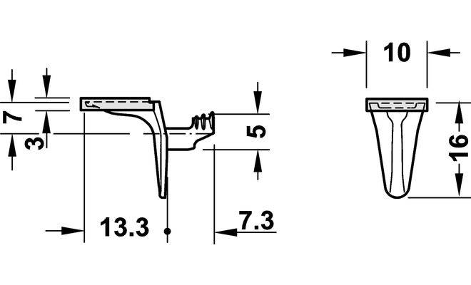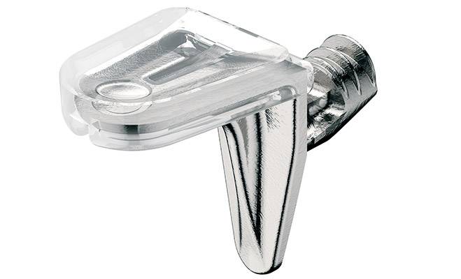 Полкодержатель для стеклянных полок для крепления в отверстии диаметром 5 мм. Выдерживает нагрузку до 2 кг.