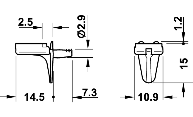 Полкодержатель для стеклянных полок для крепления в отверстии диаметром 3 мм.