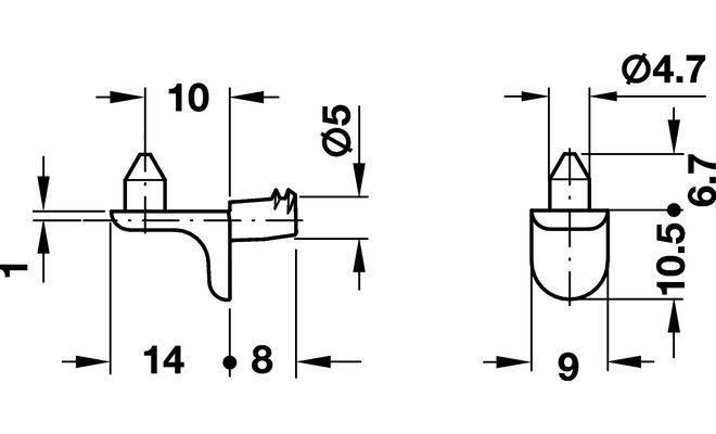 Технические характеристики Полкодержатель с 2 клиновыми носиками с вставным шипом никелированный 5 x 5 x 1 мм (упаковка 100 шт) 28224720