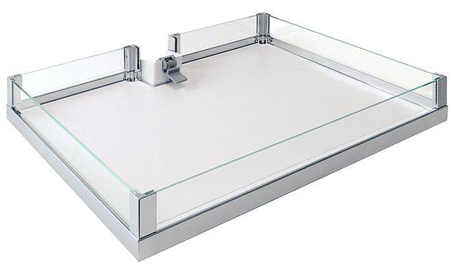 Навесная полка с бортиком, с противоскользящим покрытием, с возможностью регулировки постоянной высоти, материал: полка: ДСП, белого цвета/бортик: стекло, для ширины шкафа 600 мм, размер: ширина 480 мм, глубина 470 мм, высота 110 мм.