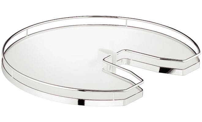 Полка поворотная Arena Classic 3/4 круга, хром — белый, 810 мм. Используется для угловых тумб или накладных дверей 90 градусов. Материалы долговечные: поворотные полки из цельной древесины, ось трубы и обрамление из высокопрочной стали, трубы дополнительно хромированы. Полка впишется в любой интерьер из-за светлых цветов, так как сверху покрыта белой пластмассой. Изделие практично в быту, поверхность не скользит, высоту можно регулировать. Для аккуратного использования устанавливают механизм мягкого закрывания. Максимальный вес, который можно поместить на одну полку, — 20 кг.