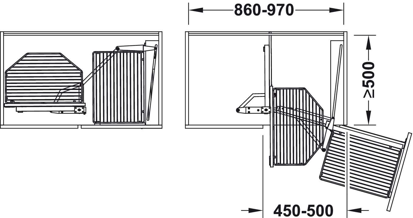 Область применения: Для угловых тумб 900 x мин. 495 мм
