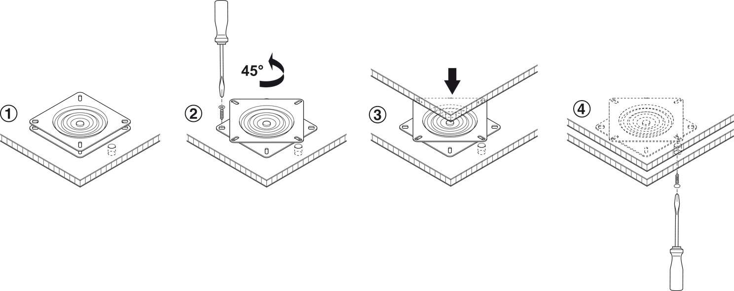 Поворотная фурнитура 360° несущая способность 150 кг оцинкованная 155 x 155 x 10,5 мм