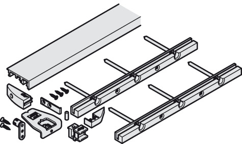 Нижний профиль 1300 мм, для скрытого положения дверей от нижней панели до верхней панели шкафа с крышками, контактным уклоном и сверлильным приспособлением.