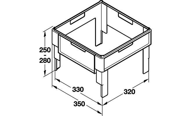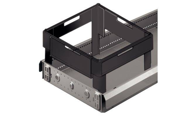 Рама подвесная с регулировкой изготовлена из пластика черного цвета. Длиной 392 и шириной 380 мм.