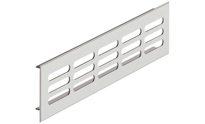 Прямоугольная вентиляционная решетка с продольными отверстиями, изготовлена из алюминия с анодированной поверхностью коричневого цвета. Высота решетки 80 мм, длина 300 мм, толщина 2 мм, длина перемычки 278 мм, площадь прохода 71 см ². Монтаж решетки выполняется путем запрессовки.