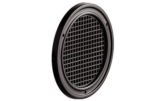 Плоская вентиляционная решетка круглой формы, с перфорацией и защитной кромкой, изготовлена из пластмассы коричневого цвета. Диаметр решетки 50 мм, толщина 3,5 мм. Монтаж решетки выполняется путем врезания, крепление гвоздями.