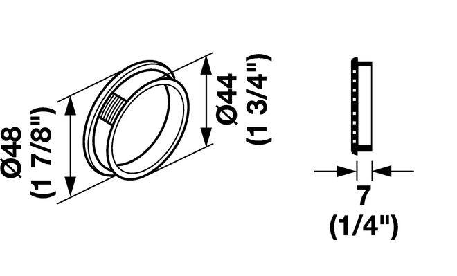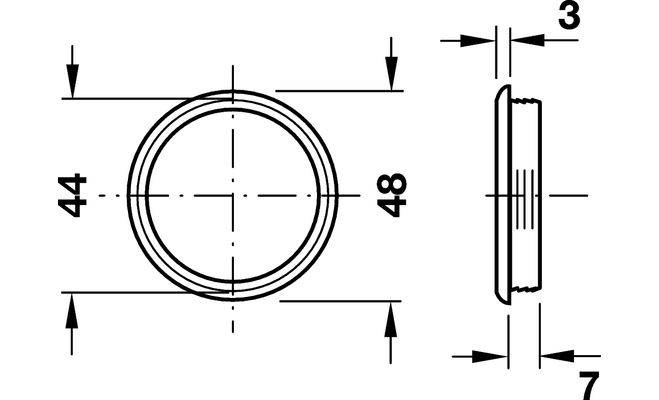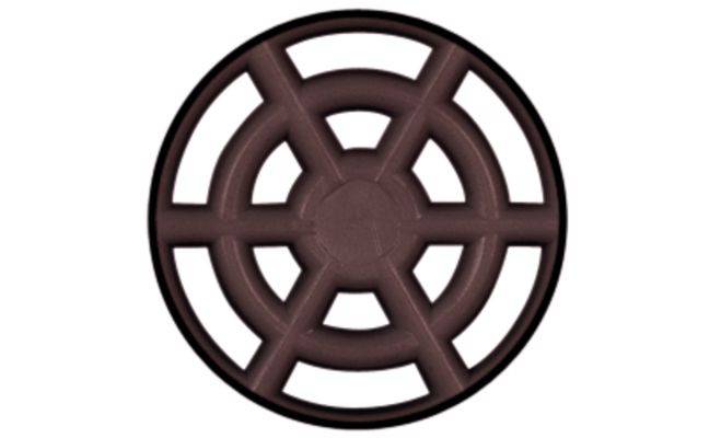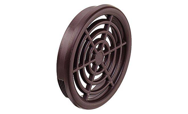 Вентиляционная решетка круглой формы с прорезями, гарпунной перемычкой и защитной кромкой. Вентиляционная решетка изготовлена из пластмассы коричневого цвета. Диаметр решетки с учетом кромки 48 мм, без кромки 44 мм, глубина решетки 7 мм, толщина кромки 3 мм. Монтаж решетки выполняется путем врезания.