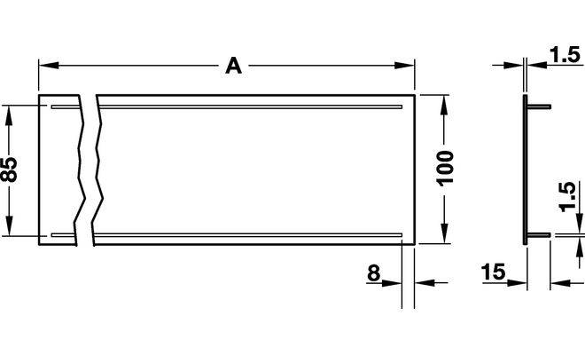 Прямоугольная вентиляционная решетка с прорезями, рифлеными перемычками и видимыми кромками с фаской, изготовлена из алюминия с пластиковой поверхностью черного цвета. Ширина решетки 100 мм, длина 1000 мм, толщина 1,5 мм, размер выреза 986х85 мм, площадь прохода 314,4 см ². Монтаж решетки выполняется путем запрессовки, фиксация путем привинчивания.