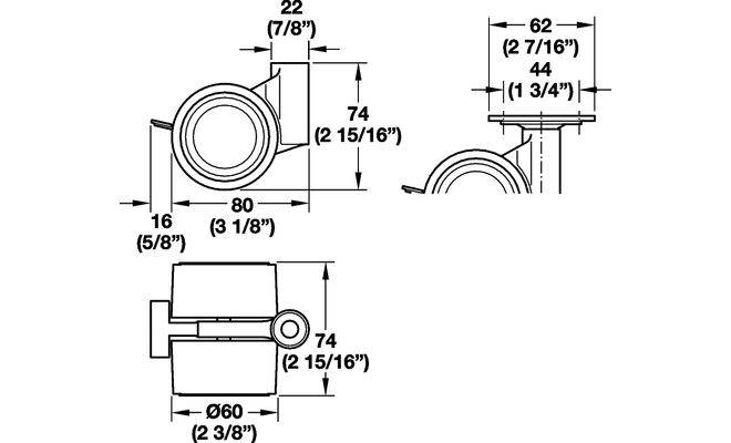 Технические характеристики Ролик мебельный со стопором, с монтажной пластиной, пластмасса D 60 мм 80 кг
