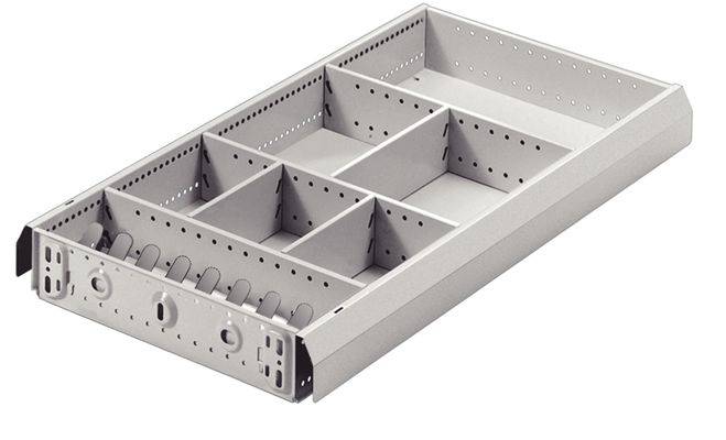 Разделитель секций изготовленный из стали алюминиевого цвета, длиной 113 и шириной 73 мм.