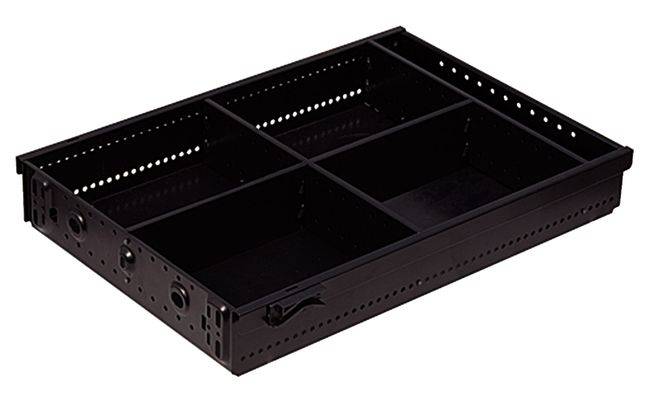 Разделитель секций изготовленный из стали, черного цвета, длиной 303 и шириной 73 мм.