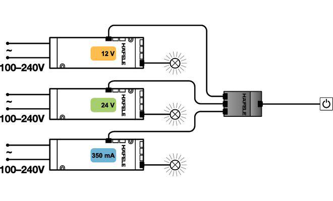 Разветвитель для драйверов 12V 24V 350mA (3 драйверы - 1 выключатель)