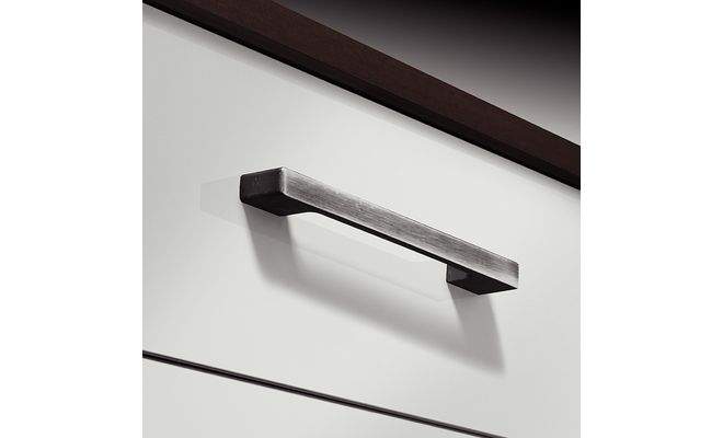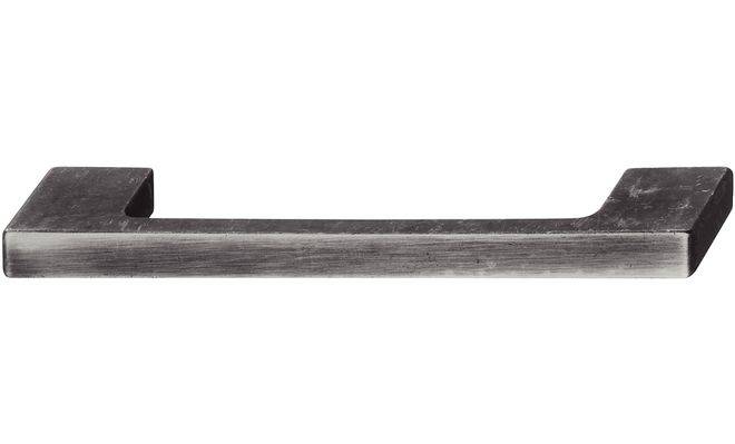 Мебельная ручка железного цвета типа скоба, изготовленная из сплава цамак. Подходит для деревянных дверей.