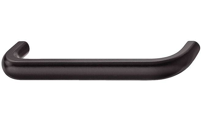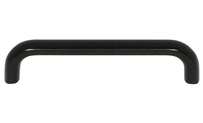 Ручка-скоба черного цвета с матовой поверхностью, длина может быть следующая: 72,104 мм, что станет отличным выбором для изделий из древесины. В наличии есть 2 разновидности товара, подобных по материалу, цвету и поверхности.