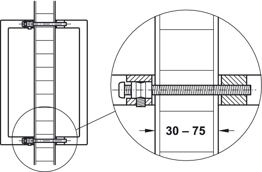 Для дверей толщиной 30 - 75 мм