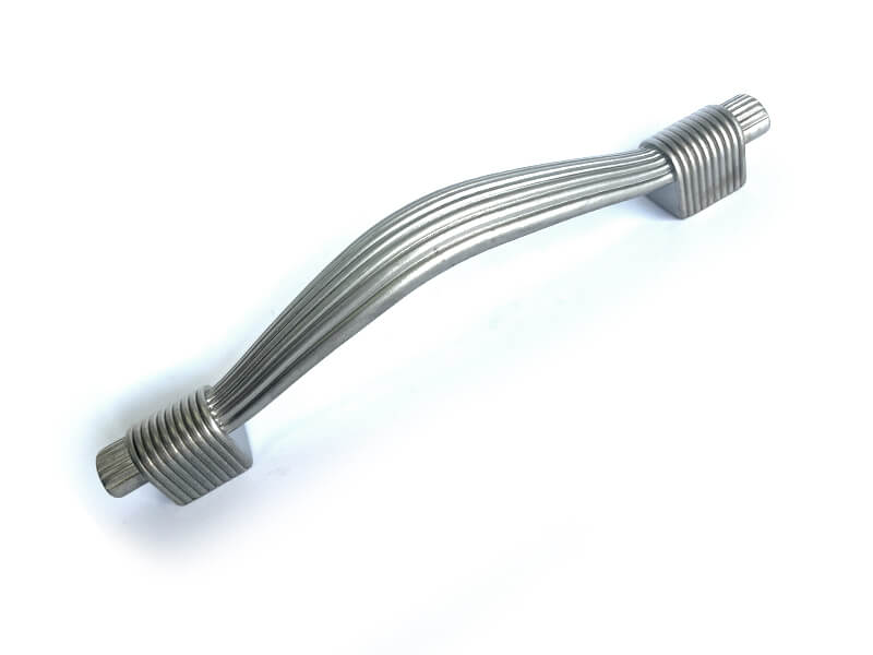 Мебельная ручка для деревянных дверей изготовлена из цинкового сплава цамак, никелированная с матовой фактурной поверхностью.