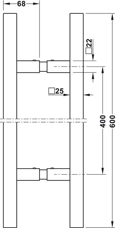 Технические характеристики Ручка дверная нержавеющая сталь матовая D25x25x400x600 мм