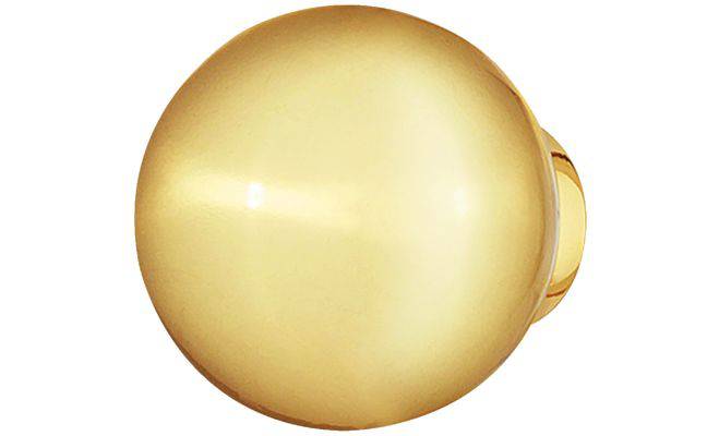 Мебельная ручка-кнопка шаровидной формы для деревянных дверей. Изготовлена из цинкового сплава цамак, с полированной поверхностью золотого цвета.