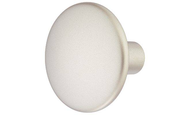 Мебельная ручка-кнопка круглой формы для деревянных дверей. Изготовлена из цинкового сплава цамак, никелированная с матовой поверхностью.