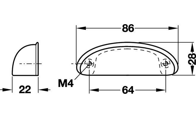 Описание Ручка мебельная 86 х 22 мм NM матовая