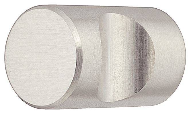 Мебельная ручка-кнопка круглой формы, для деревянных дверей. Изготовлена из нержавеющей стали, класса качества 1.4301, матовой поверхностью.