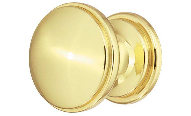 Мебельная ручка-кнопка круглой формы, для деревянных дверей. Изготовлена из латуни с полированной поверхностью.