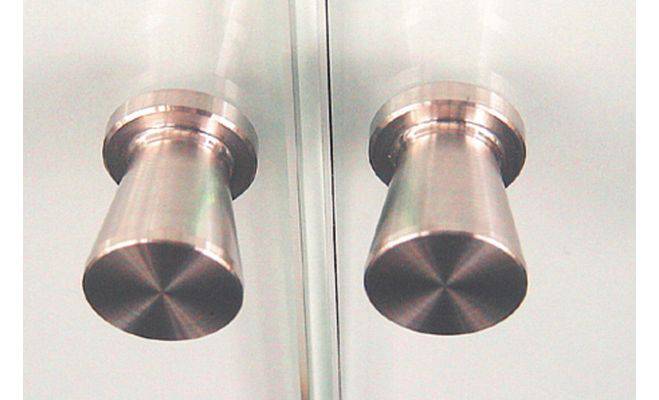Мебельная ручка-кнопка, для стеклянных и зеркальных дверей, изготовлена из нержавеющей стали с матовой поверхностью.