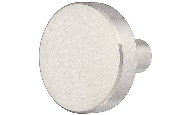 Мебельная ручка-кнопка круглой формы для деревянных дверей. Изготовлена из нержавеющей стали, класса качества 1.4305, с матовой поверхностью.
