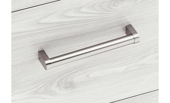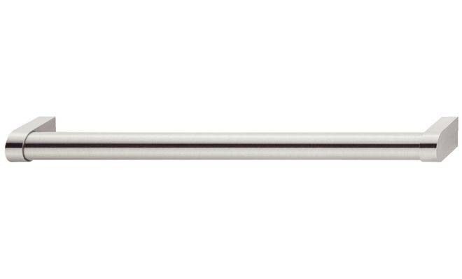 Мебельная ручка типа скоба, изготовленная из сплава цамак, покрытие цвета нержавеющей стали, с матовой поверхностью. Подходит для деревянных дверей.