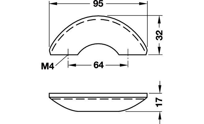 Описание Ручка-дуга 95 х 32 мм цамак кожа темно коричневая