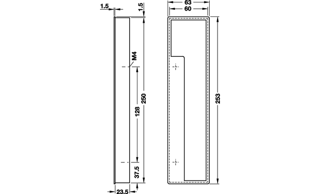 Описание Ручка врезная цамак цвет алюминий матовая 253 x 63 мм левая