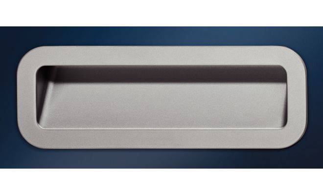 Мебельная врезная ручка с для деревянных дверей. Изготовлена из цинкового сплава цамак с поверхностью алюминиевого цвета.
