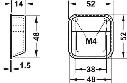 Описание Ручка мебельная врезная 52 x 52 мм цамак алюминий