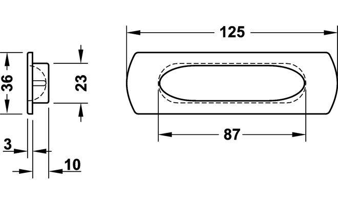 Технические характеристики Ручка врезная пластиковая, цвет алюминий 125 х 36 мм