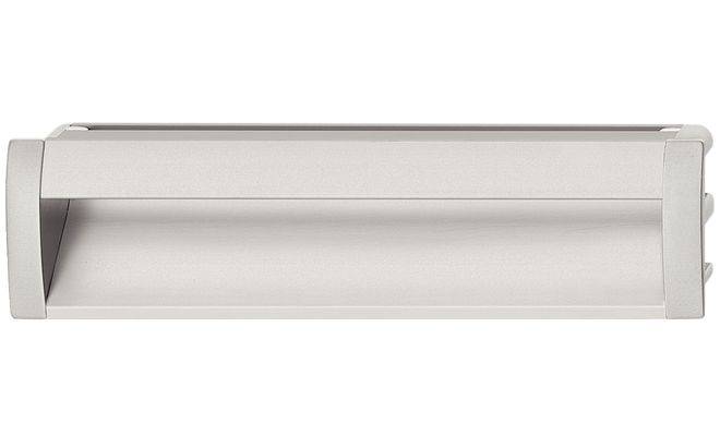 Мебельная врезная ручка с для деревянных дверей. Изготовлена из алюминия цвета нержавеющей стали, торцевые крышки ручки изготовлены из цинкового сплава.