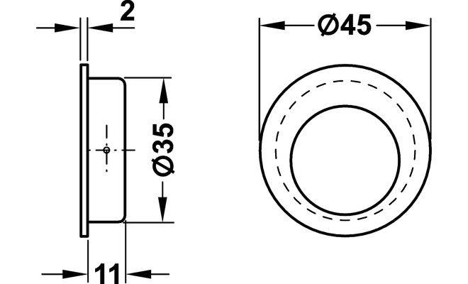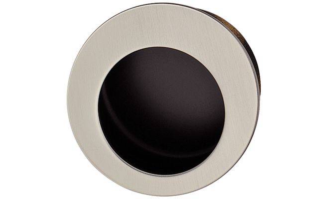 Мебельная врезная ручка круглой формы с круглым отверстием для деревянных дверей. Изготовлена из нержавеющей стали, класса качества 1.4301, с матовой поверхностью, внутренняя часть ручки черного цвета.